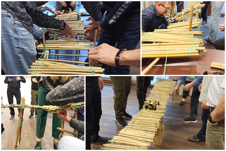 Dziś w ramach spotkania integracyjnego 64 osobowa grupa wcieliła się w rolę konstruktorów i budowniczych mostów.