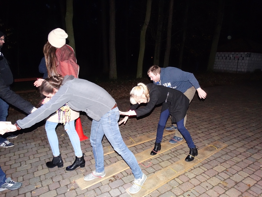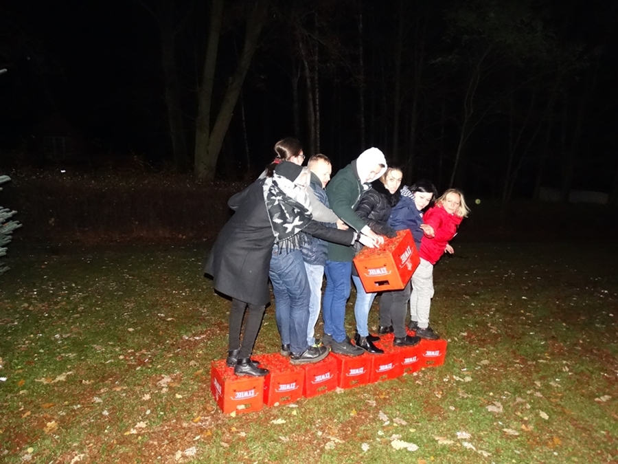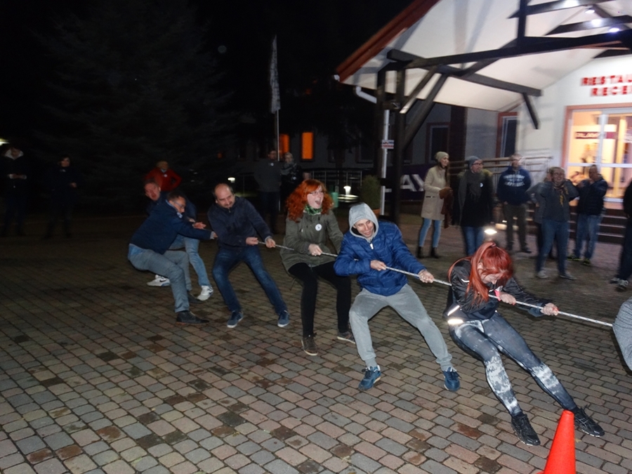 Śmiech, zabawa, rywalizacja czyli zajęcia teambuiding. Uczestnikom zabawy nie straszne były chłód, pierwszy śnieg czy zmrok za oknem.