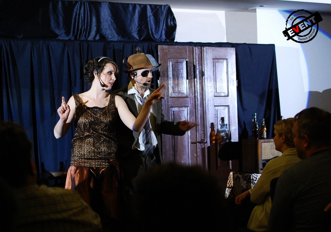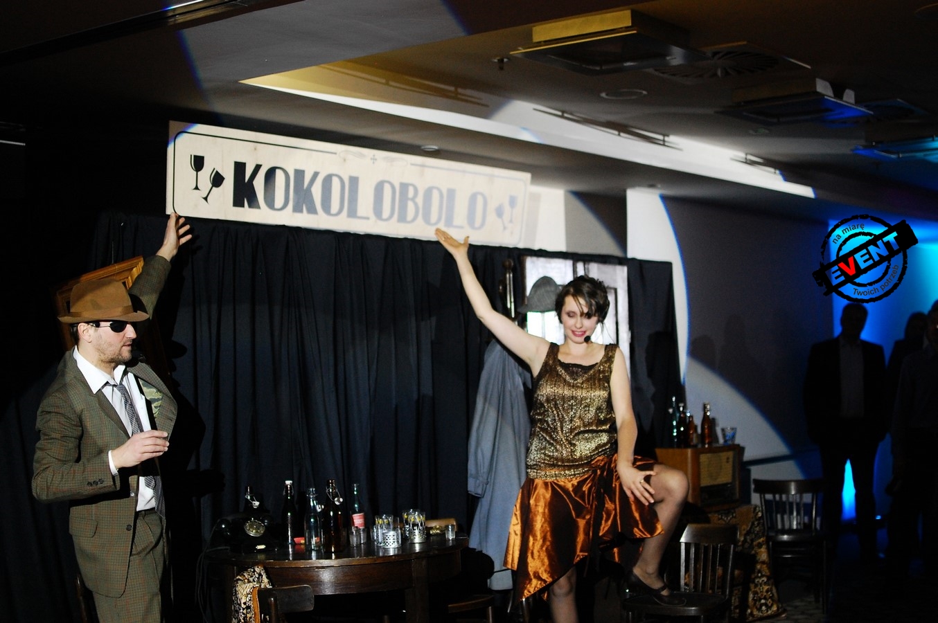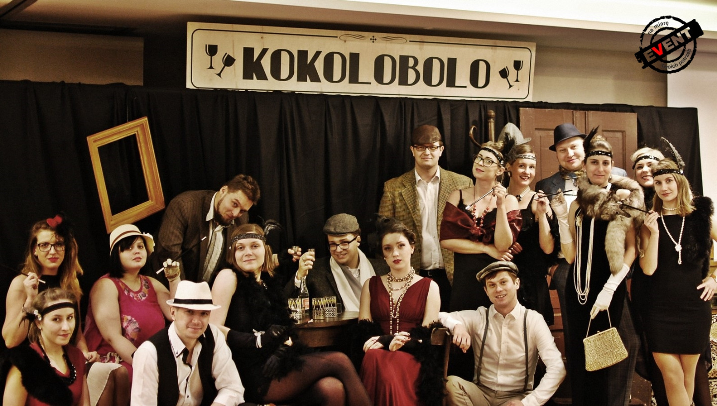Po obiedzie goście udali się do sali konferencyjnej gdzie czekała już na nich dekoracja w klimacie lat 20 ubiegłego wieku, na początku odbyło się tam spotkanie podsumowujące rok pracy firmy. Następnie do gry wszedł Ślepy Maks wraz ze swoją przyjaciółką, po krótkim wstępie wprowadził gości w klimat eventu Otwieramy KOKOLOBOLO.