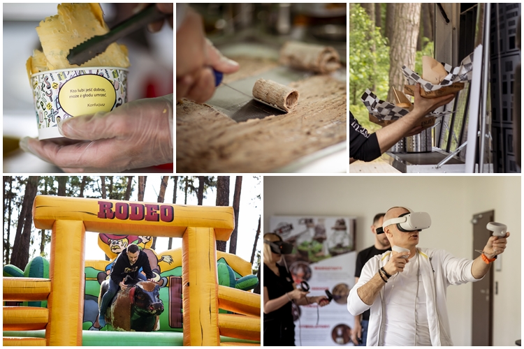 W ramach zajęć plenerowych dostępne były dla uczestników mega piłkarzyki, piłkarzyki stołowe, Dart, Byk Rodeo, wirtualna rzeczywistszy, quiz filmowy oraz smaczne przekąski burgery prosto z Food Trucka oraz Lody Tajskie…… pycha.