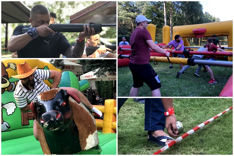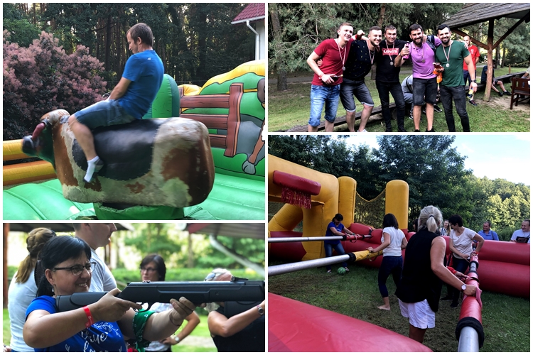 Zabawy było co nie miara, strzelanie do celu, szalona jazda na byku i rozgrywki w mega piłkarzyki a po wszystkim jedzenie palce lizać.
