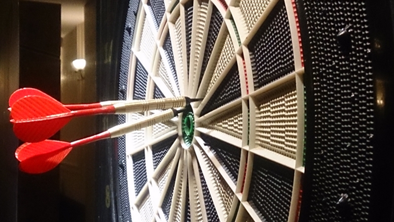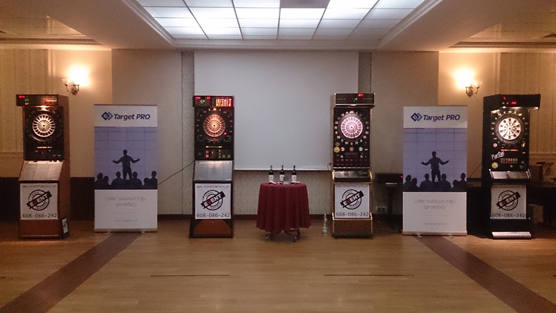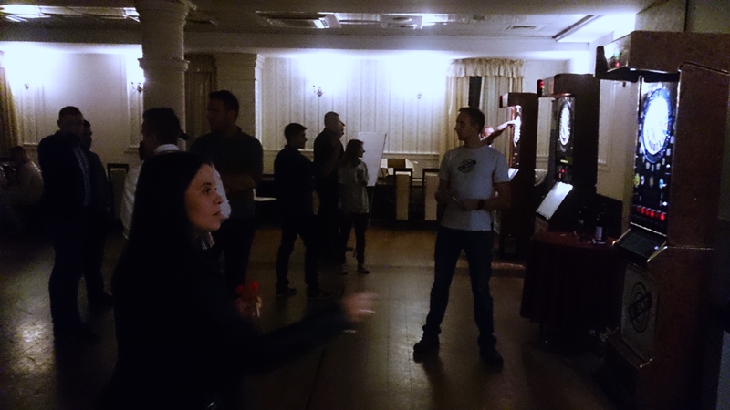Dziś w ramach eventu wieczornego przygotowaliśmy dla gości spotkania Turniej Dart. Na czterech równoległych stanowiskach grało ze sobą ponad czterdzieści osób. Na początek rozgrzewka, każdy mógł spróbować swoich sił w celowaniu to tarczy. Później turniej, rywalizowały ze sobą czteroosobowe zespoły, z każdej czwórki jedna osoba przechodziła do półfinału a następnie do finału.