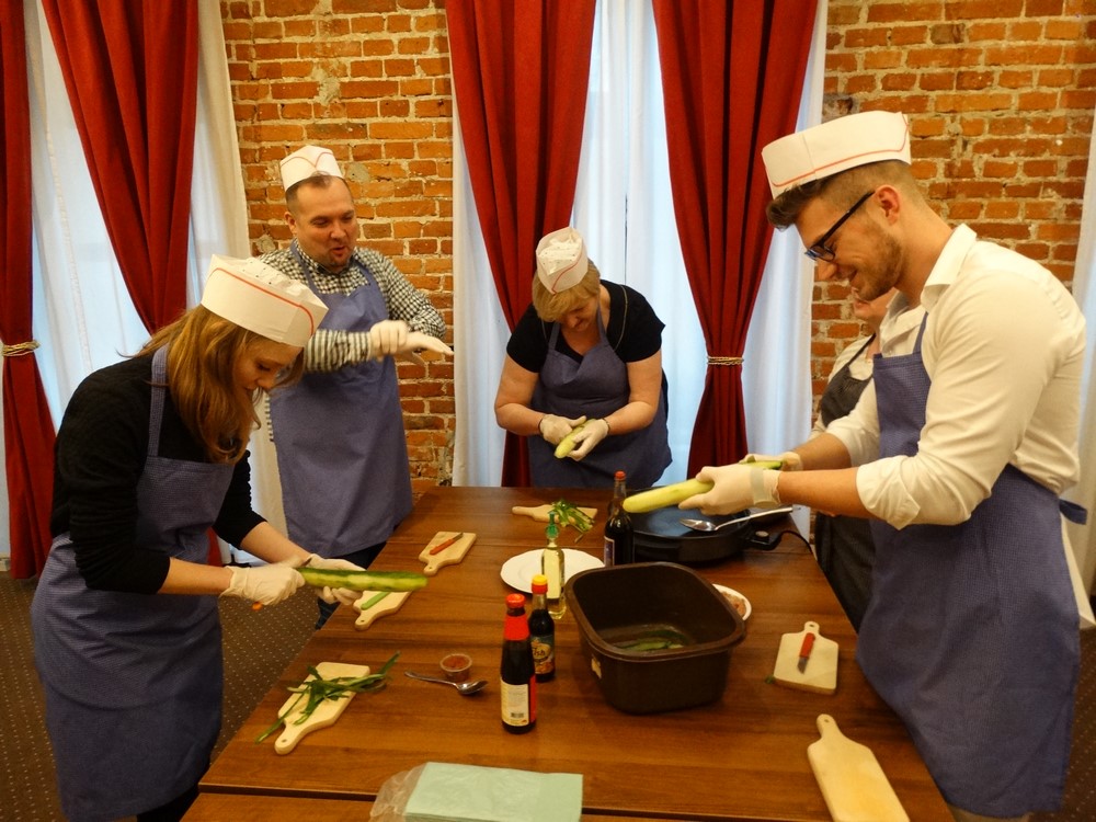 W ramach warsztatów kulinarnych goście przygotowali dania kuchni tajskiej, kroili, siekali, tarli i gnietli. Potem gotowali, smażyli i dusili.