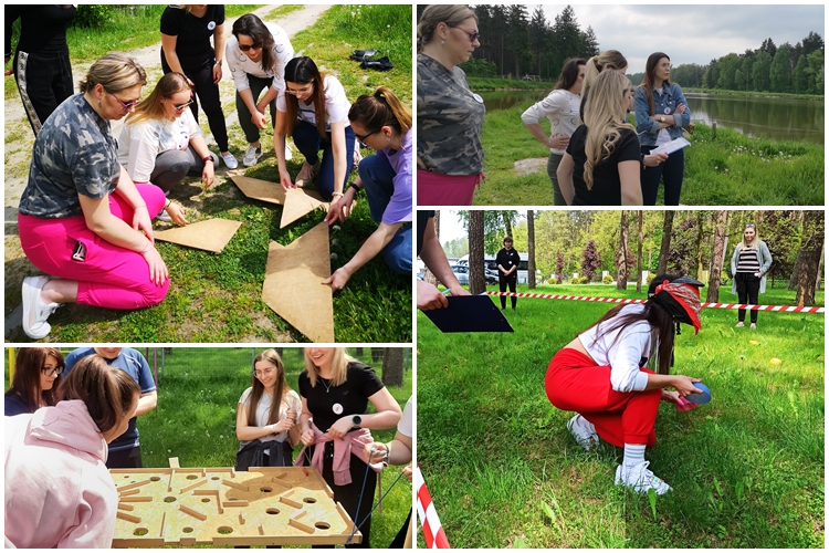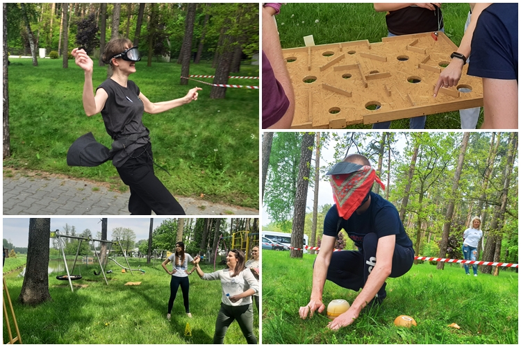 Od 12:00 do 14:00 upchnęliśmy w planie kilkanaście konkurencji. A wśród nich między innymi wyzwania, quizy i zagadki, zadania sprawnościowe – a wszystko to na świeżym powietrzu i terenie przynależnym do hotelu! Ale bez obaw – nasz team rozsiany po lesie miał wszystko pod kontrolą.