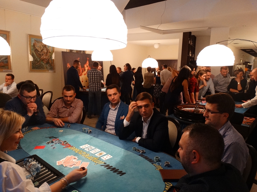 Dziś dla grupy ponad 70 osób zorganizowaliśmy zabawę w kasyno w hotelu Lawendowe Termy w Uniejowie. Na przygotowanych przez nas pięciu stołach uczestnicy mogli zapoznać się z zasadami panującymi w kasynie. Zrozumieć Black Jacka, ruletkę czy Teksas Holdem, nasi instruktorzy z uśmiechem na twarzy tłumaczyli gościom zasady panujące w kasynie – przestrzegając jednocześnie przed grą w prawdziwym kasynie.
