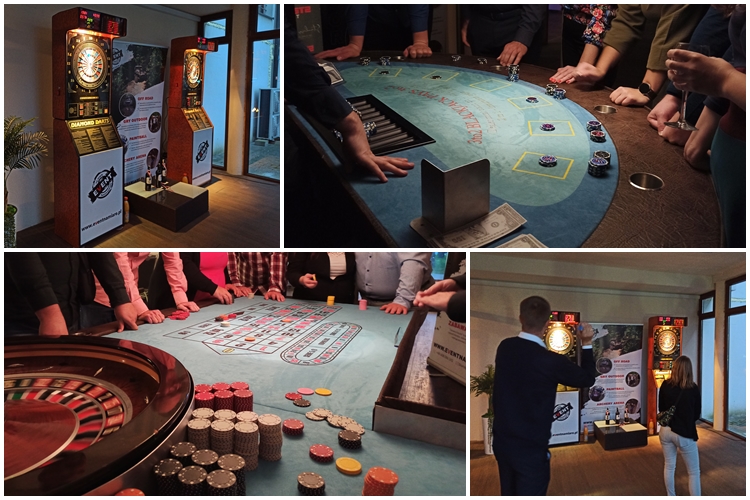 Dziś w ramach spotkania wieczornego jednej z firm zorganizowaliśmy niezawodny dodatek „Zabawa w Kasyno” oraz dwa stanowiska Dart.